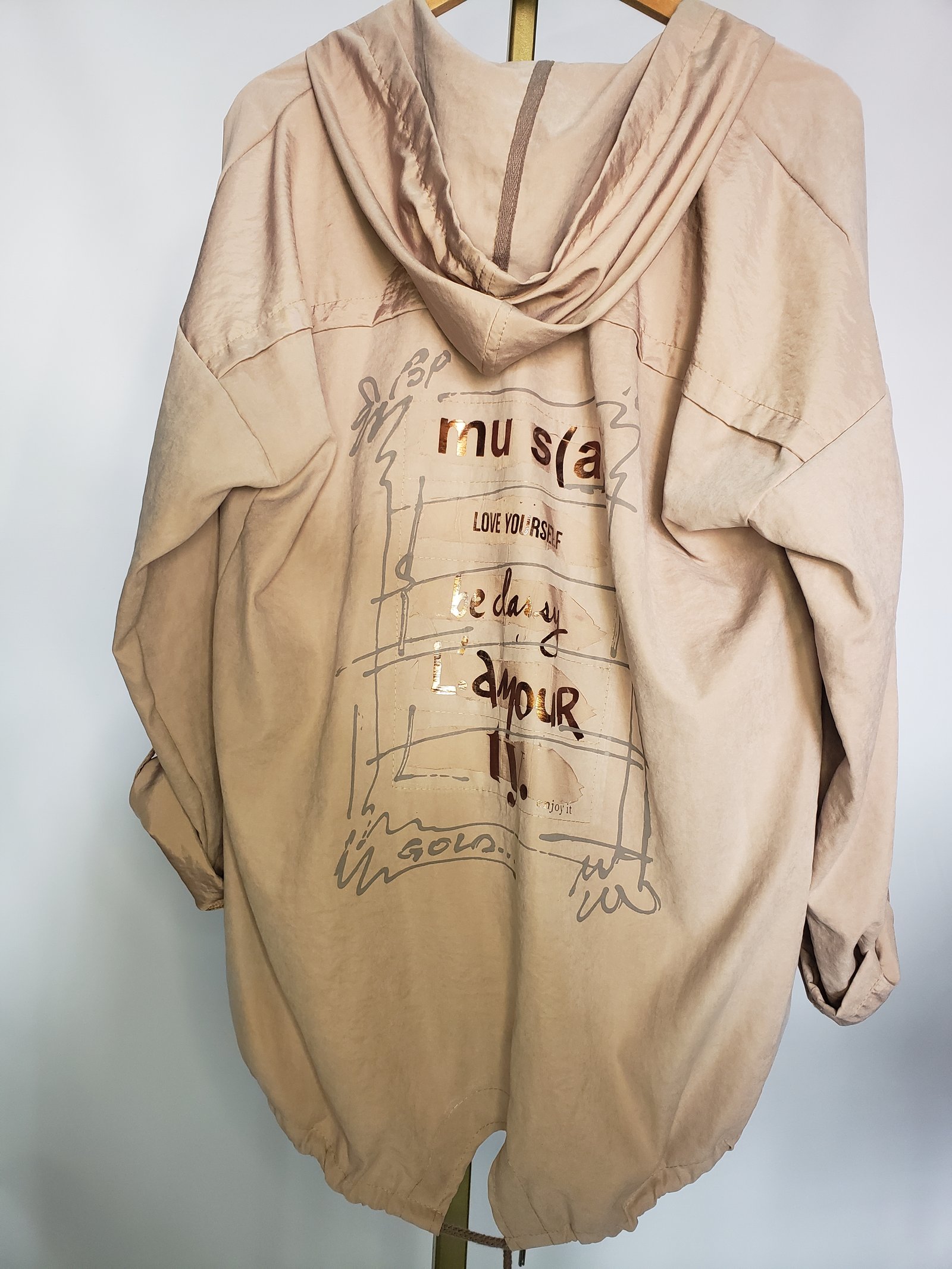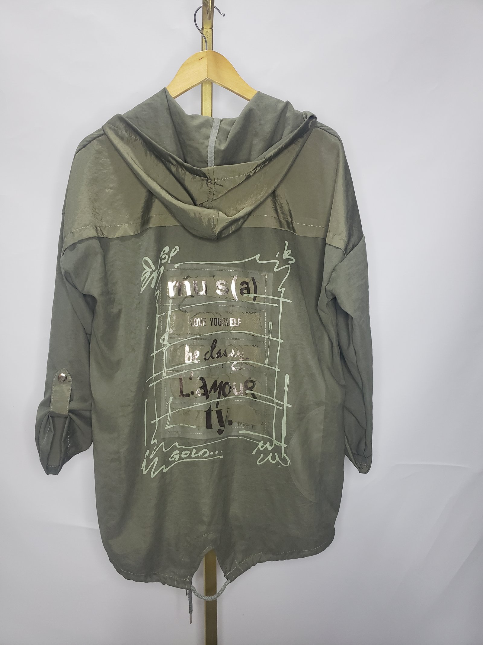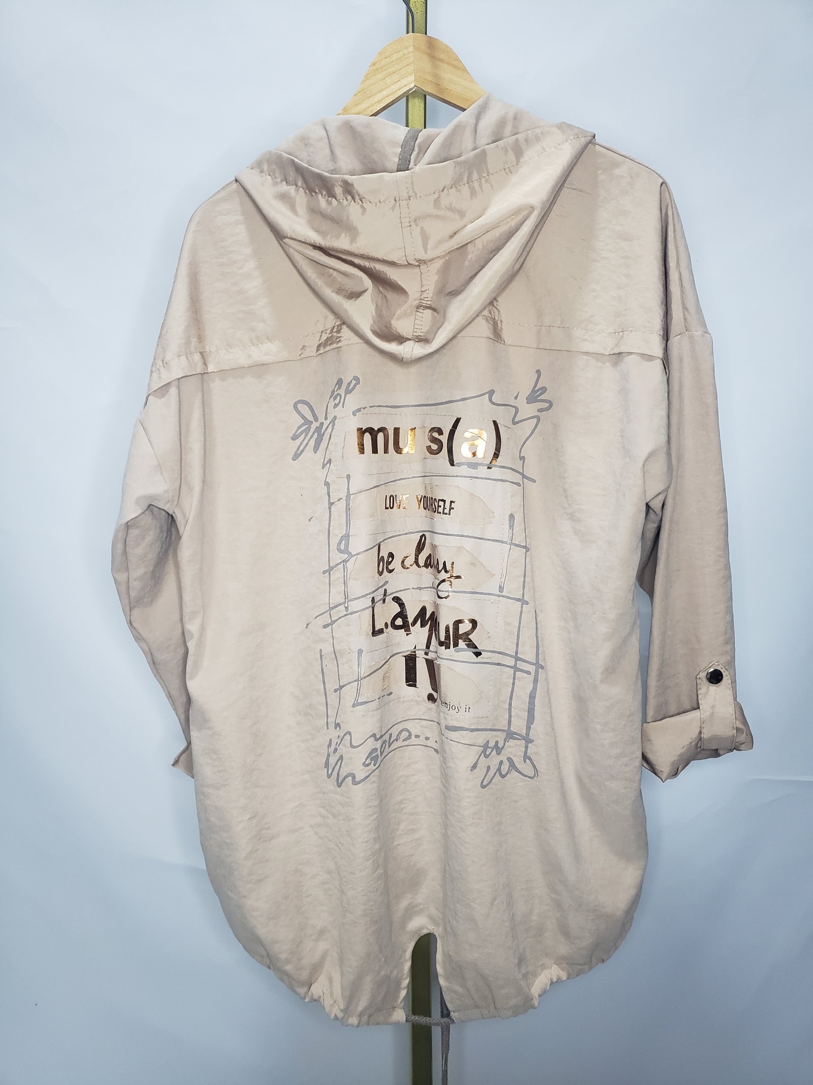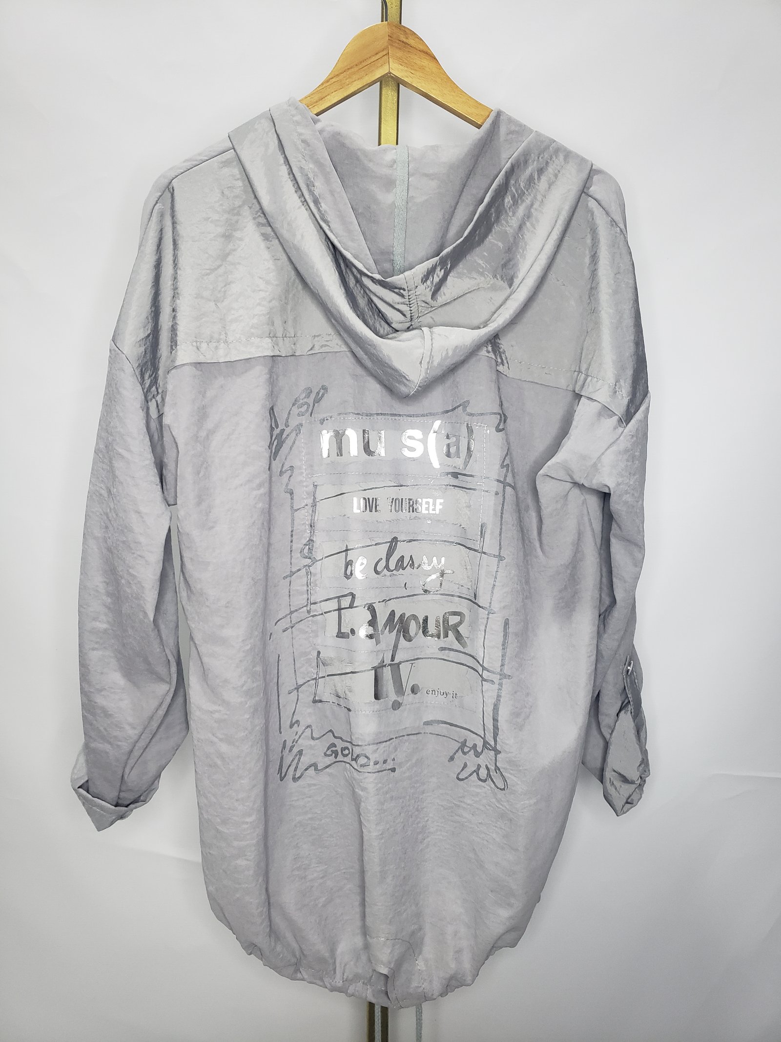 Tela ligera de media estación, con detalles en foil en la espalda.MEDIDAS APROXIMADAS: M/LContorno: 122 cmLargo: 70 cmL/XLContorno: 126...