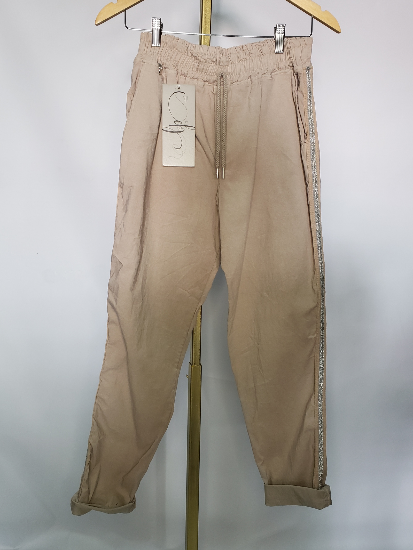 Pantalón de bengalina con galón lateral.MEDIDAS APROXIMADAS: Circunferencia de cintura: 74-98 cmCircunferencia de cadera: 110-130 cmLar...